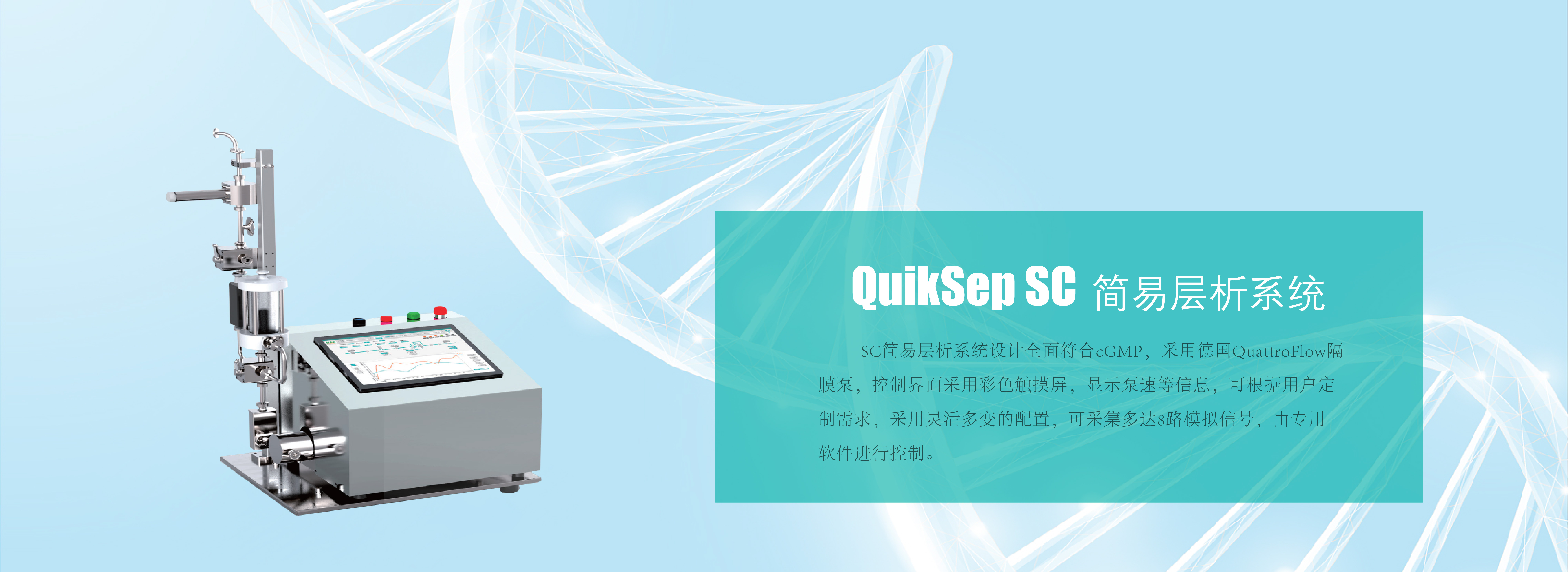 慧德易科技QuikSep 生物智能泵是通過(guò)軟件控制隔膜泵的轉(zhuǎn)速,配合衛(wèi)生級(jí)壓力流通池及管路,通過(guò)實(shí)時(shí)壓力檢測(cè)和電機(jī)配合,實(shí)現(xiàn)恒流和恒壓,防止泵超壓,實(shí)現(xiàn)定時(shí)定量,適用于生物制藥在層析、過(guò)濾、料液轉(zhuǎn)移等各種輸送液體的應(yīng)用。 點(diǎn)擊閱讀+